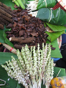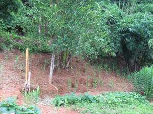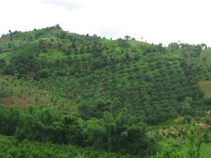 チェンライ県のハーブ栽培農園はほとんどが山岳部にあります。山間部に住んでいる山地民族の方が農園を耕しハーブを育てています。タイハーブはその原種の多くが山間にあり、栽培するのに平地より山間部の方が適しています。山の木が枯れて土壌を肥沃にし、雨が降っても冠水することがないのでいつも適量の水分が保たれています。自然な環境の中では生体系のバランスが取れているので特定の害虫が大量発生することがなく農薬を使う必要もありません。また土の栄養分が枯渇しないために、十分な間隔をあけてハーブを植えています。